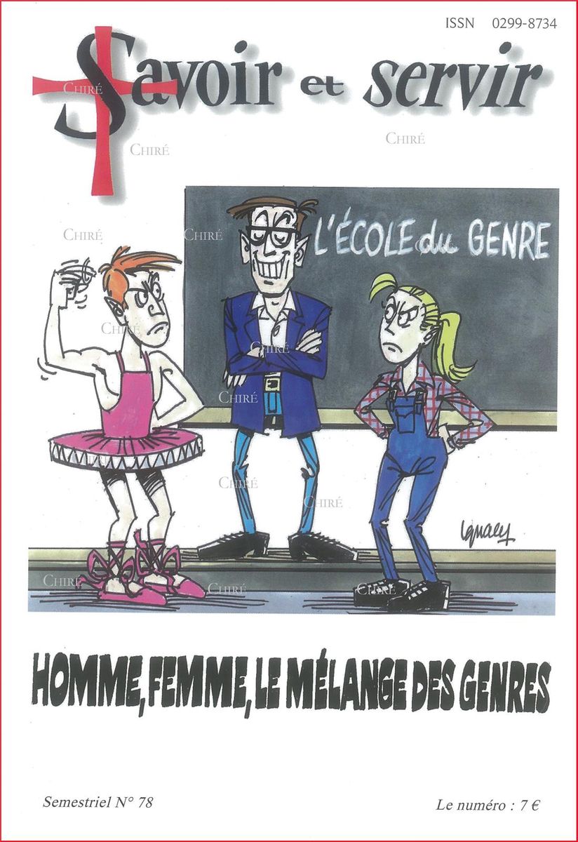 (1) Homme, femme, le mélange de genre, dossier complet et toujours d’actualité réalisé par le MJCF (Mouvement de la Jeunesse catholique de France) dans sa revue Savoir & servir, n° 78, 2015.